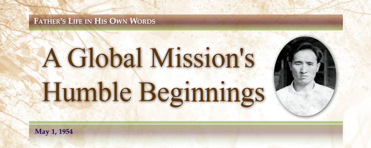 Our church started from that small hut [in Busan] and developed into a worldwide movement. In line with the principle of restoration, the representative needs to appear who can pray on the world level from the smallest house. That’s my ideology. The representative then needs to pray on the world level from a slightly larger house. The history of the Unification Church shows such upward development through all the stages.