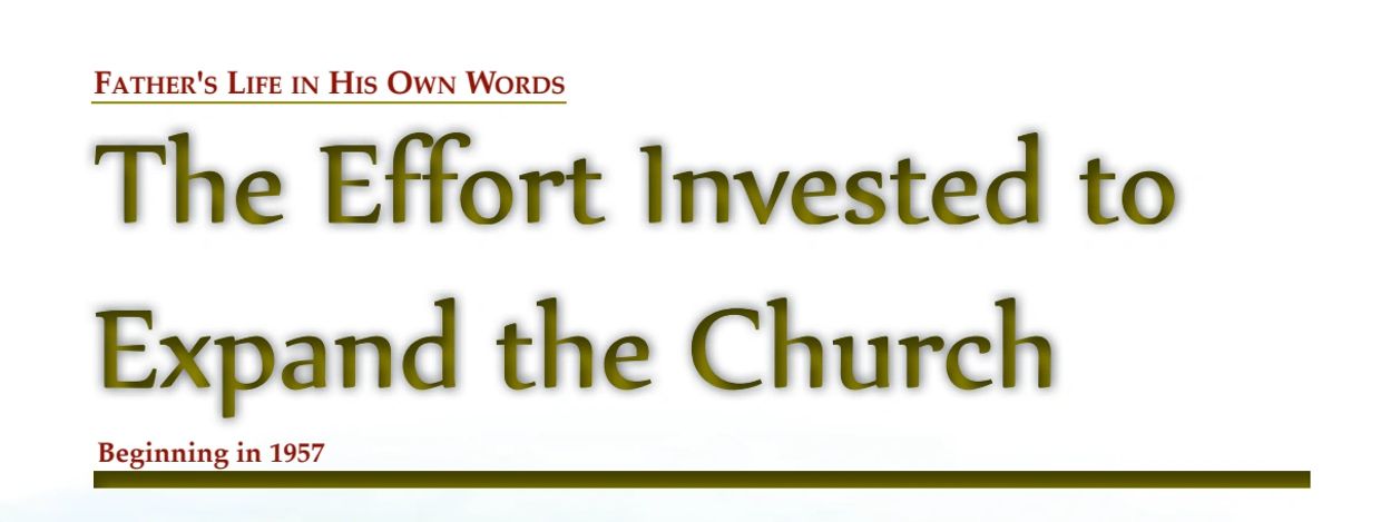 In this installment, the twenty-third to appear in Today’s World, Father reminisces about the early church, including fasting and witnessing conditions and the first workshops.